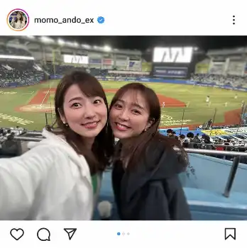 テレ朝・安藤萌々アナ 人気女子アナと「野球観戦」2ショットに「こちらでも交流戦」「かわいすぎ」の声
