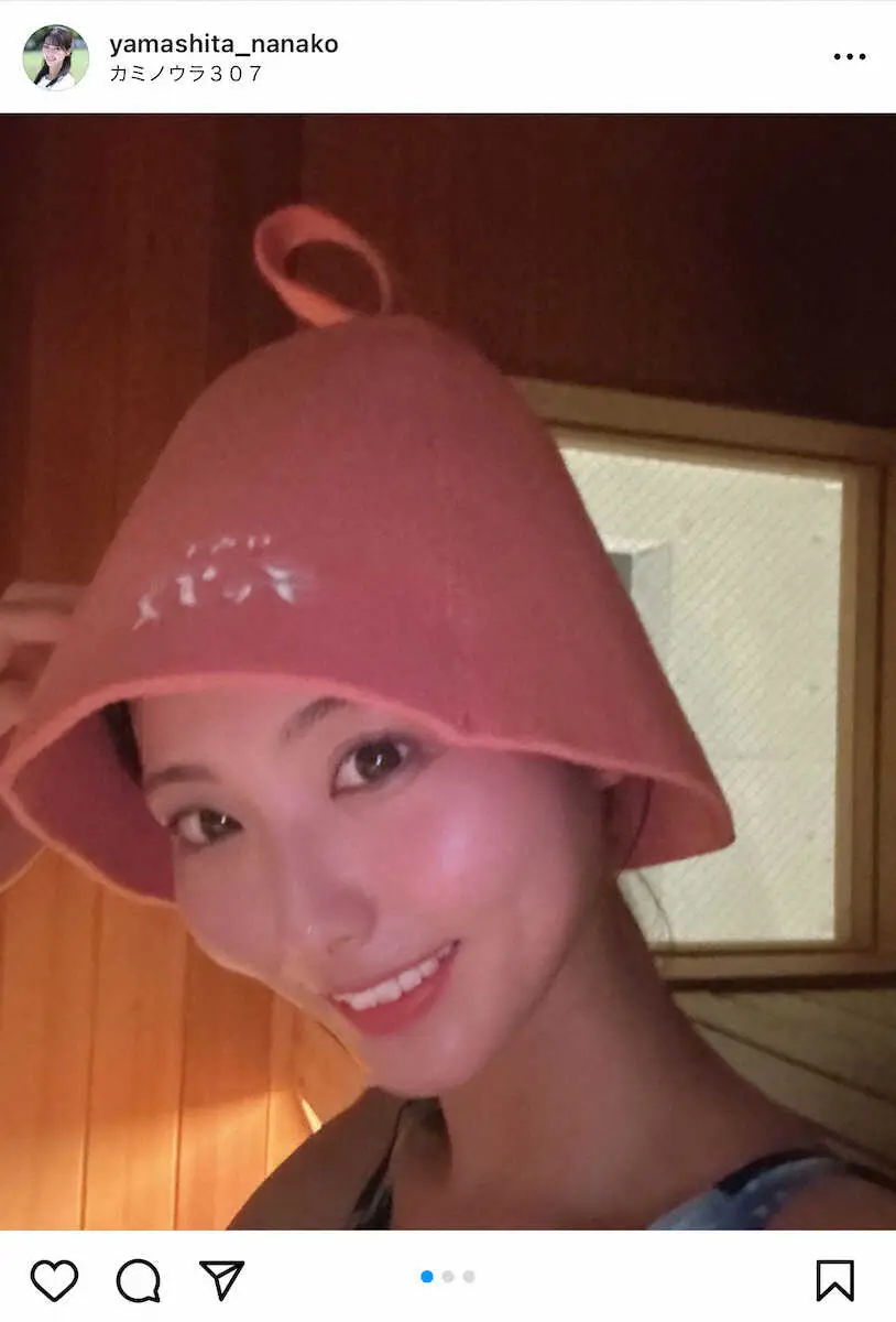 自身のインスタグラムで「ななこととのいちゅう」とサウナハットを被って、サウナを楽しんでいる自撮り写真を数枚投稿した。