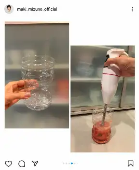 そして「バーミックス専用のクッキングカップが見当たらなかったので、ペットボトルを切ったモノで代用」と写真を掲載。「カップ、捨ててしまったのかな 手作り完熟トマトジュース、最高です」とつづった。