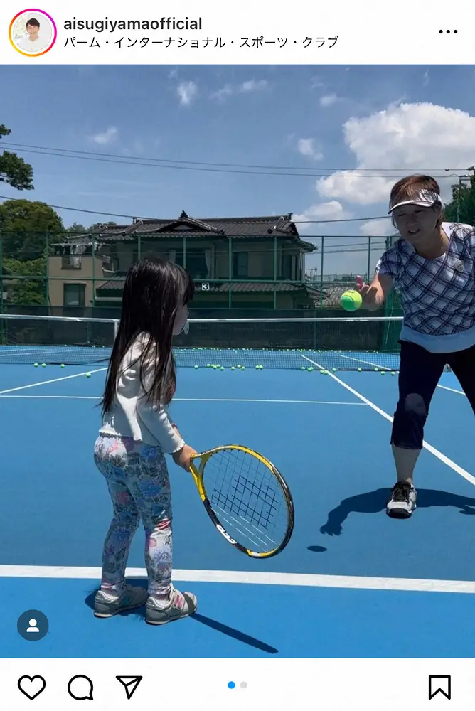 テニスコートで、杉山の母・芙沙子さんが出すボールを打ち返したり、ボール拾いしている娘の動画をアップ。おしゃぶりをくわえながら、ラケットを懸命に振って見事に打ち返し、芙沙子さんも拍手しながら褒めていた。