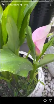 「今年は咲いた。見て。きれいだねえ。うれしい。これはもう凄い。10まで行くかなあ、何年も前にファンの方からいただいたカラー」と、ピンクの花が咲いているカラーのショットをアップした。