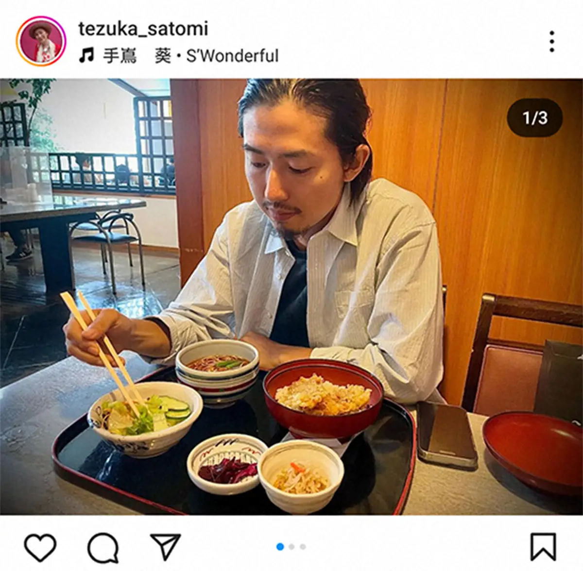 手塚はまず9日に「次男とランチ ランチはお蕎麦屋さんへ」と、次男で俳優の手塚日南人とランチに行ったことを報告。