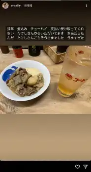 そして「たけしさんからいただいてます 本当だったんだ」と驚がく。「たけしさんごちそうさまでした うますぎた」とつづった。