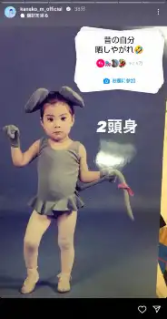 特定のお題にそって回答を投稿するインスタグラムのバトン「昔の自分晒しやがれ」に応え、ねずみのコスチューム姿でポーズを決めた幼少期の写真を掲載した。