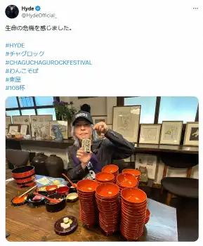 この反響を受けてHYDEは「わんこそば食ったのがそんなに凄いのかい?」とコメント。ハッシュタグで「親が心配するやん」「108杯」「わんこそば」と続けた。