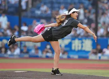 人気女子プロゴルファー・臼井麗香が始球式 ショーパン姿、豪快フォームで場内大歓声