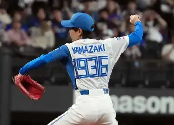 自身の名前をもじった背番「1936」の日本ハムユニホームを上下に着て登場した山崎は、「ミュージカル界一、プロ野球を愛する山崎育三郎がエスコンフィールドにやってきました」とキメ顔を見せると会場に向かって投げキス。大歓声を浴びた。