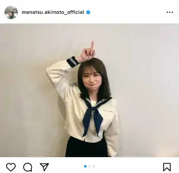 秋元は「定期的なセーラー服」とセーラー服姿の写真を投稿。ハッシュタグでは「#林修の今知りたいでしょ」と記して、テレビ朝日の番組に出演したことを報告した。