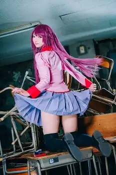 【コスプレ図鑑】良き太ももの絶対領域…美穂『化物語』戦場ヶ原ひたぎ 怪しさ漂う背景で心奪われる振り向きポーズ