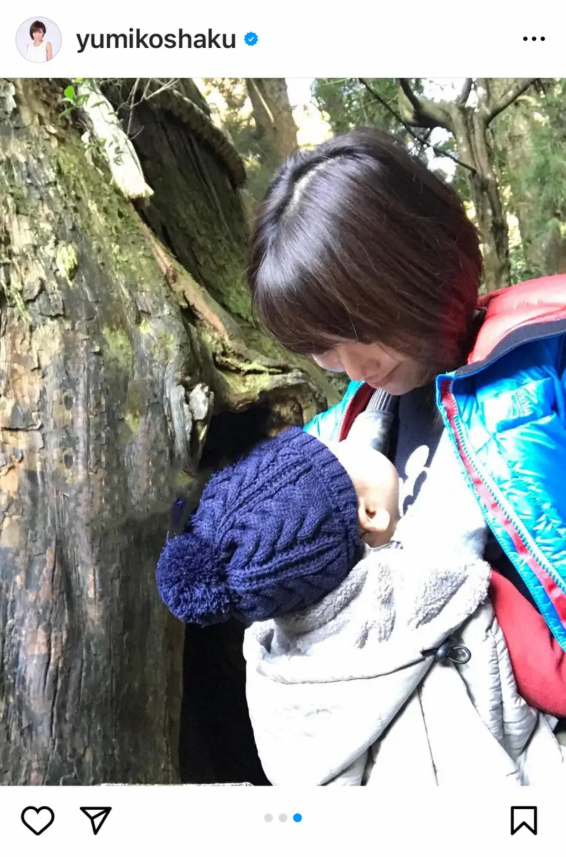 釈は2015年10月に実業家の男性と結婚。自身の38歳の誕生日となる翌16年6月12日に長男が誕生した。
