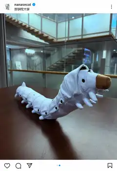相川は「養蚕信仰を研究している友達が、『カイコのぬいぐるみを買ったんだ』と持ってきていた」と投稿。「遠くから見たらギブスかと思ったぐらいに、長くて面白い」と伝えた。