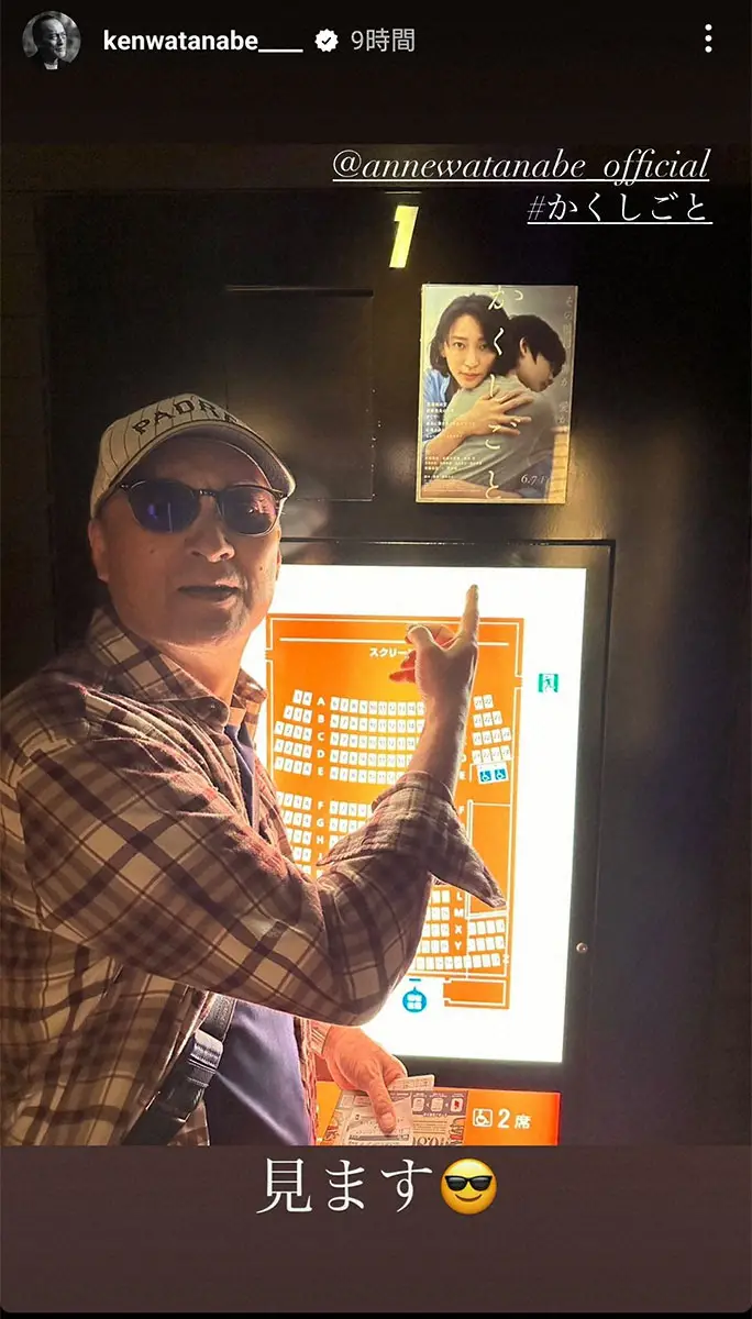 俳優の渡辺謙(64)が13日、自身のインスタグラムのストーリーズを更新し、長女で俳優の杏(38)が出演している作品をこっそり観に行ったことを明かした。