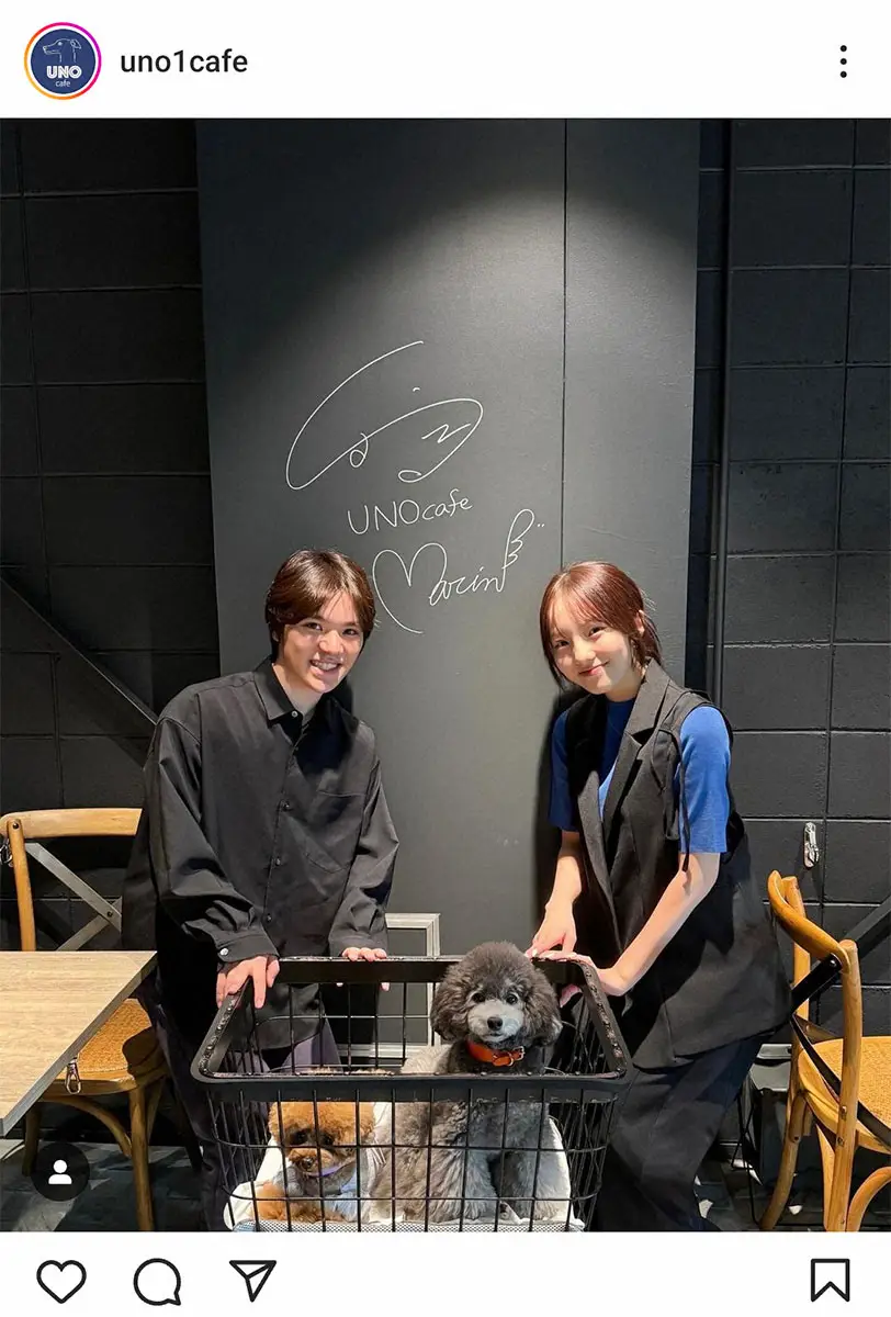 デートの場所は、宇野さんの弟・樹さんが経営する名古屋のドッグカフェ「UNO cafe」で、宇野さんは「美味しかったよー」とつづり、愛犬トイプードルのトロとエマを抱いて笑顔の写真を投稿した。