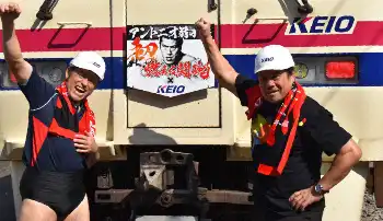 闘魂トレインの前で「ダァー!」を決める藤波(右)とアントキの猪木 Photo by スポニチ 車内はアントニオ猪木一色!闘魂トレイン、京王線で16日から運行 ギャラリーで見る この記事のフォト 2024年06月14日の画像一覧 もっと見る 2024年06月14日の画像をもっと見る