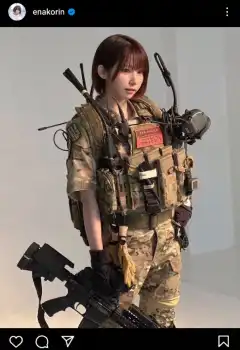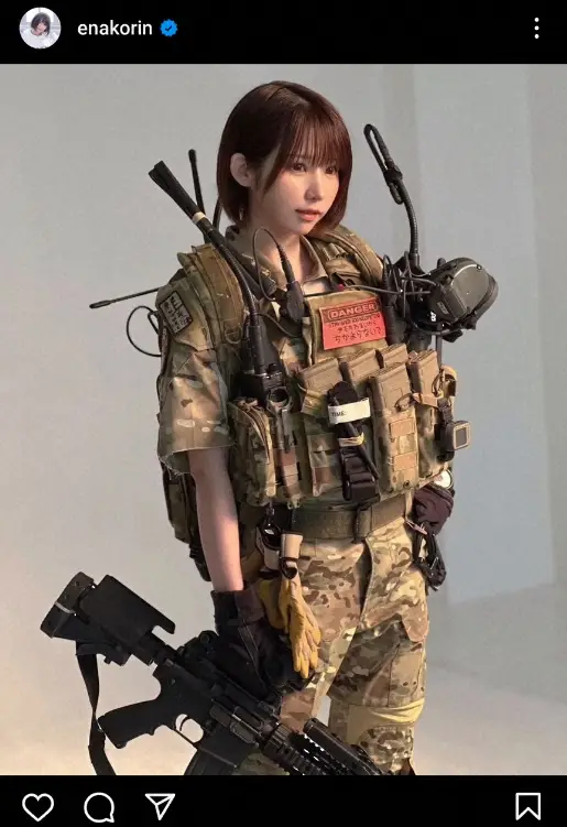 人気コスプレイヤーえなこ(30)が14日までに自身のインスタグラムを更新。重装備の戦闘服姿を披露した。
