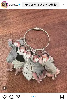 4月に第1子誕生を発表した鷲見。「天才的に可愛いグッズが爆誕してしまった」とつづり、我が子の姿が入ったスマートフォンケースやキーホルダーをアップした。