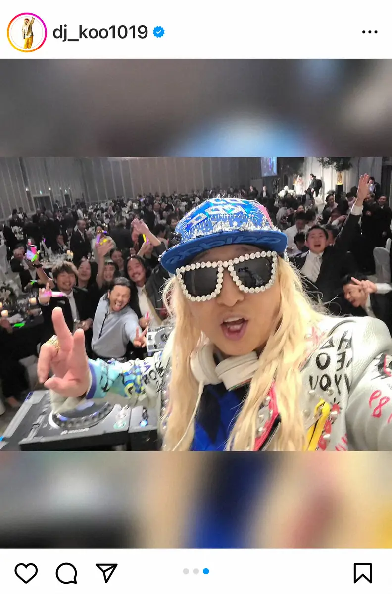 【画像・写真】DJ KOO 稲垣啓太&貴子夫妻の披露宴参列「笑顔だらけの最高の披露宴」 豪華メンバーがDJ参戦