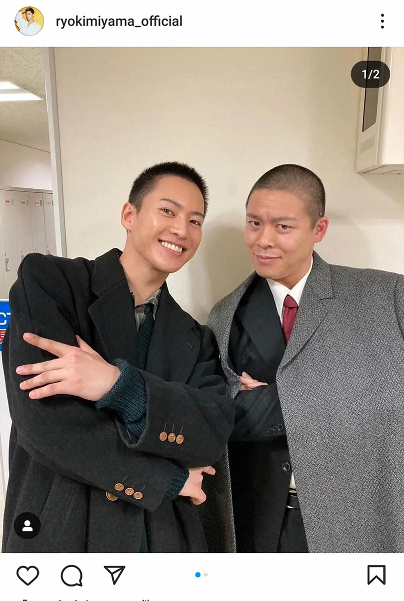 15日夜には松川が自身のインスタグラムに「凌輝は撮影で初めてお会いしてからすぐに意気投合!!直明と同様、キラキラしてて本当にいいブラザーです」と投稿していたが、三山はこれを受けて「ちなみにこれはブラザーというより、仏さまーてす。ほんとにそこまで丁寧にいつも言葉を紡いでくれる方がおりますかってくらい凄く向き合って優しく素敵な言葉をかけてくれるそんなお方です」と松川の人柄を紹介。「初めて猪爪家から飛び出して新しいシーンでの環境での撮影だったからドキドキしてたけどこんな出会いやそんな出会いもあり皆優しくて喜びに溢れる現場になりやした」と続けた。