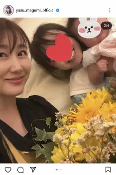安めぐみ 9歳長女、0歳次女と親子Sに「笑顔がステキ!」の声 東MAXへの父の日プレゼントも明かす