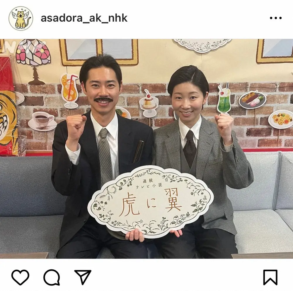 同アカウントでは「#トラつばオフショット」「いよいよあすから第12週 轟法律事務所も動き出します…!ちょっと昔のオフショットをお届け」とコメントし、轟太一役の俳優・戸塚純貴と山田よね役の女優・土居志央梨が「連続テレビ小説 虎に翼」と文字の入ったボードを手にポーズを取る2ショットを公開した。