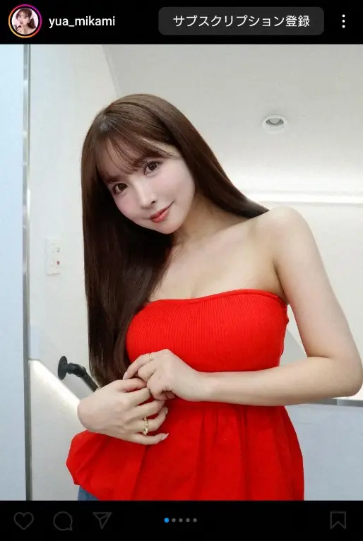 SKE48の元メンバーでタレントの三上悠亜(30)が19日までに自身のインスタグラムを更新。赤のベアトップ姿でニューヘアを披露した。