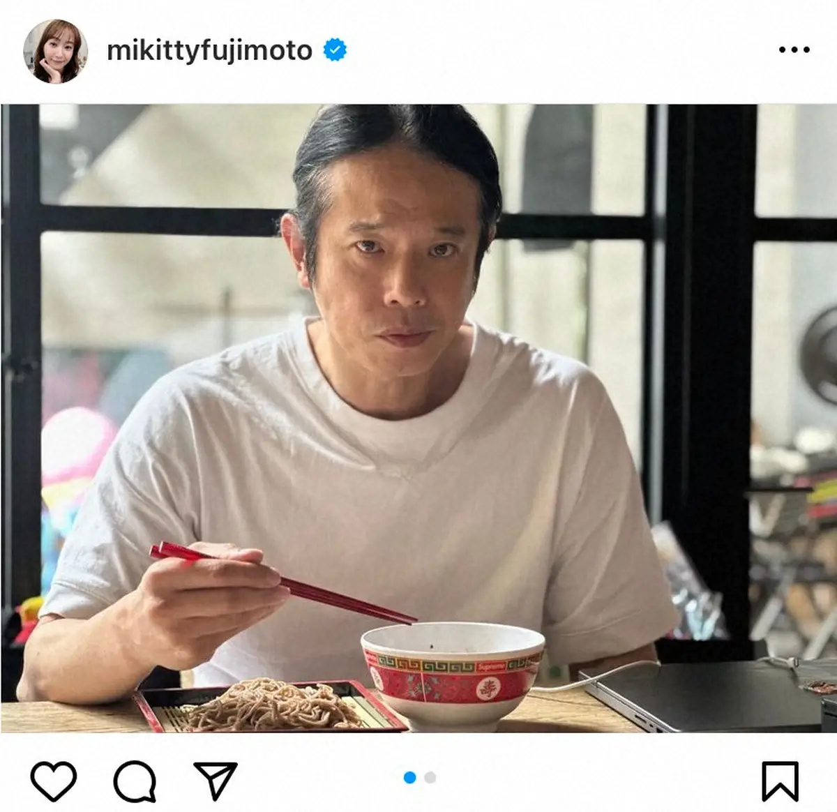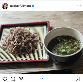 真顔でそばを食べる庄司の写真を投稿した藤本は、「マッチョ大将が作ってくれた朝ごはん。もずくとオクラのつけダレ美味しすぎる」と、つけダレを絶賛。「ごちそうさまでした」と感謝の気持ちをつづった。