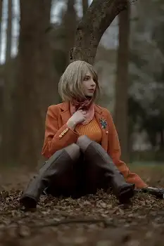 ポージングは、アシュリーのエレガンスさと、ゲーム中に彼女が感じている恐怖を表現しようとしました。アシュリーの場合、衣装自体はそれほど難しくなかったです!必要な色を見つけるのが難しかったので、セーターの色合いを揃えるために染料を使いました。ブレザーは彼女の衣装の中で最も重要な部分だと思うので、経験豊富なお針子さんに頼んで完璧に仕上げてもらいました」