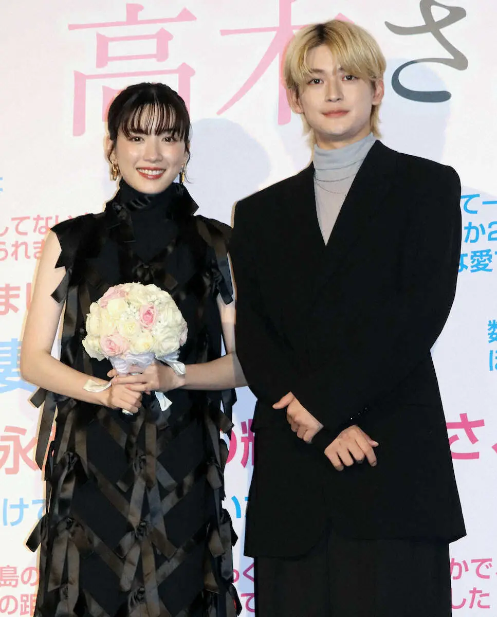 女優の永野芽郁(24)が19日、都内で主演映画「からかい上手の高木さん」の大ヒット御礼舞台あいさつを、共演の高橋文哉(23)とともに行った。
