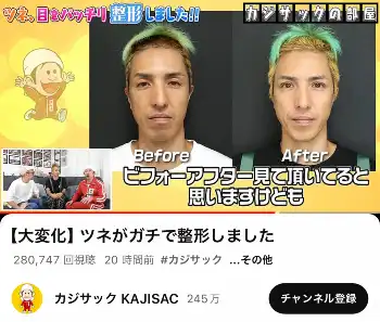 元2700・ツネ 2度目の整形を報告「気分が全然違う!」 激変ビフォーアフターにカジサックも仰天