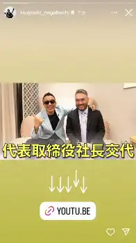 シンガー・ソングライターの長渕剛(67)が20日に公式YouTubeチャンネルを更新。自身が所属する事務所「Office REN(オフィス・レン)」の代表取締役社長に、元サッカー選手で実業家のダ・シルバ・ファビオ・岡氏(33)が新たに就任したことを発表した。