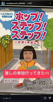 かしゆかはストーリーズで「推しの単独行ってきた」と報告。20日に東京・草月ホールで開催されたお笑いタレント・いとうあさこの単独ライブ「いとうあさこお誕生日会“ホップ!ステップ!ステップ!~ひざにやさしく~”」を訪れたことを伝えた。