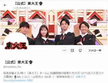 TBS「東大王」9月末で終了 赤門スター輩出も最近は視聴率低下 開始から7年「一定の役割を終えた」