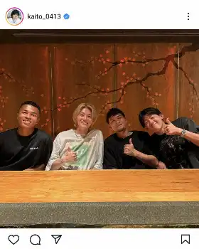 櫻井海音 「久々に会ったサッカー仲間たち」U-23日本代表と4ショットに「豪華メンバー」「いい笑顔」