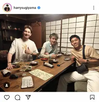 ハリー杉山 「進化の一年お疲れ様でした!!」サッカー日本代表MF&JOYとの豪華食事会ショット披露
