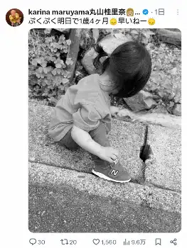 丸山は前日に「ぷくぷく明日で1歳4ヶ月 早いねー」とつづり、23年2月21日に誕生した長女の写真を投稿した。