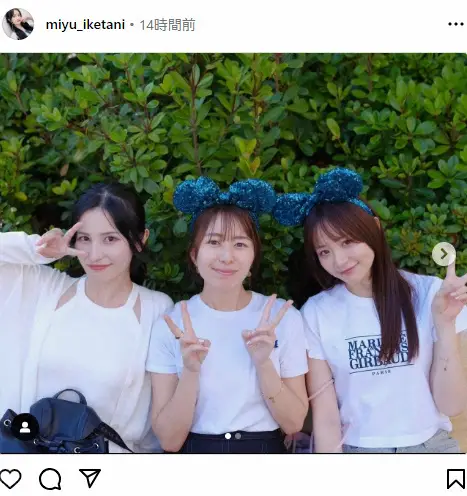 池谷と森は同期入社。森も自身のインスタグラムでテレビ東京時代の仲間とディズニーシーの新テーマポート「ファンタジースプリングス」を訪れたことを明かしていた。