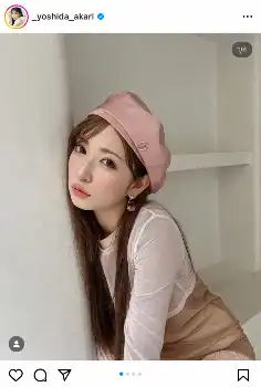 吉田は、ピンクの帽子をかぶり、いつもと違ったガーリーな雰囲気のメーク姿を披露し「@sweet_editors発売中」と現在販売中の宝島社のファッション誌「sweet」を宣伝。続けて「なんと初めての#イガリメイク @igari_shinobuさんにやっとお会いできました」と“イガリメーク”で知られる人気メーキャップアーティストのイガリシノブ氏にメークをしてもらったことを明かした。