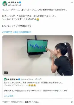 この動画をWorld Horse Racing公式アカウントは「亜咲花にとって、これまでで最も大きなリアクションかもしれない」と記して、亜咲花の動画を引用して投稿した。
