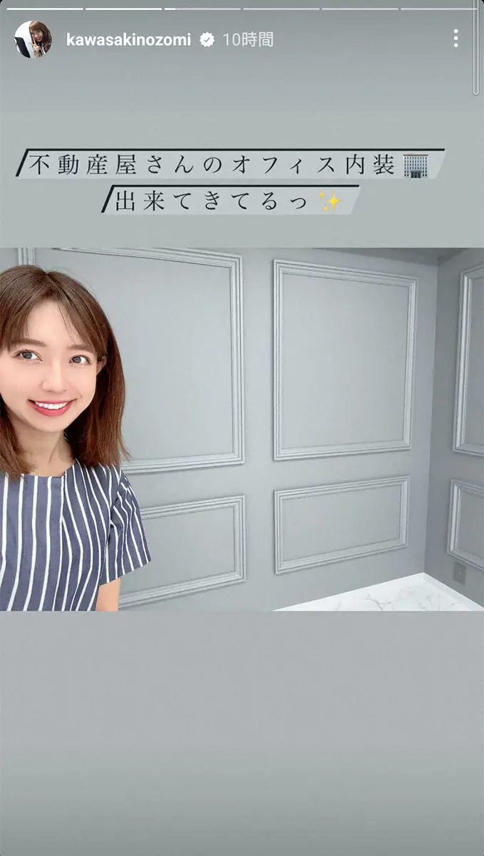 タレントの川崎希(36)が25日、自身のSNSを更新。現在開業の準備を進めている不動産会社の内装を披露した。