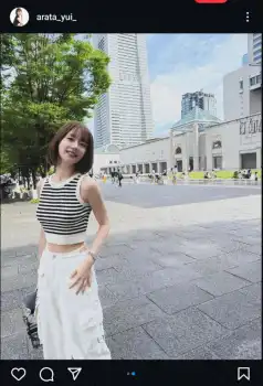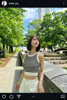 カメラの絵文字とともに、ボーダー柄のノースリーブのトップスに白いカーゴパンツ姿の写真をアップ。ハッシュタグで「新唯」「ショートヘア」「ショートボブ」「スタバ」「レースクイーン」「ラウンドガール」「リングガール」と添えた。