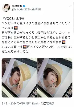この投稿にファンからは「麦わら帽子が似合ってて可愛い!そして白ワンピースも」「美波ちゃんVoCE買いました!ワンピースも麦わら帽子もちょー似合ってます」「夏メイクも夏ワンピースどれも参考になるものばっかりで今年の夏は真似しようと思いました」などのコメントが寄せられている。