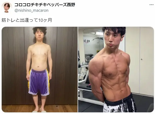 お笑いコンビ「コロコロチキチキペッパーズ」の西野創人(32)が27日、自身のX(旧ツイッター)を更新し、肉体美ショットを公開した。
