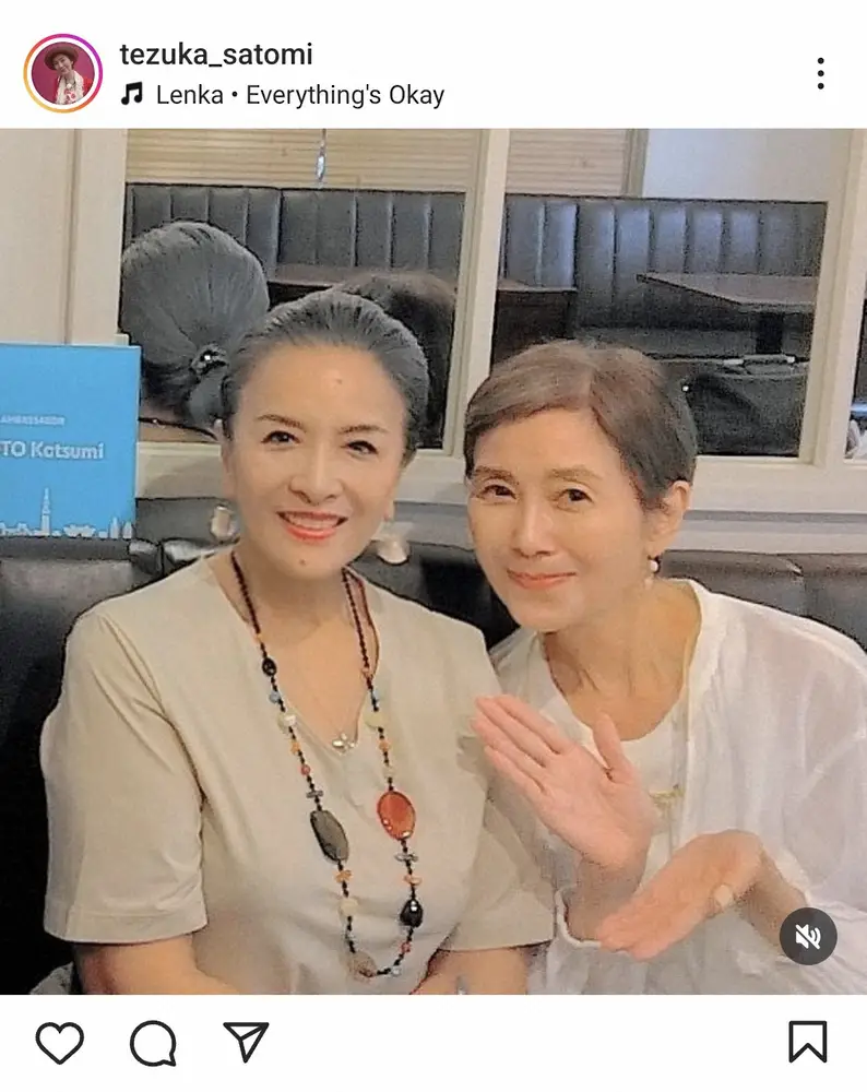 女優の手塚理美(63)が28日、自身のインスタグラムを更新。女優の池上季実子(65)との2ショットを披露した。