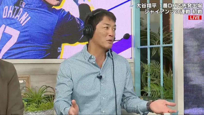 しかし、番組の最後に「今日のピックアッププレー」を発表する場面で「誰を選んでたっけ。ワイズリーだ」とサヨナラ弾のワイズリーを挙げようとしたところ、9回に同点につながる三塁打を放ったドジャースのパヘスを事前に選んでいたことを指摘されて苦笑い。直前に顔面付近の投球があったにもかかわらず、パヘスが三塁打を放った姿勢を称え「恐怖が誰でもくるけど、左足を踏み込んでいったのは格闘技のような勝負だった。もう1球きてたら確実に乱闘だった」と振り返った。