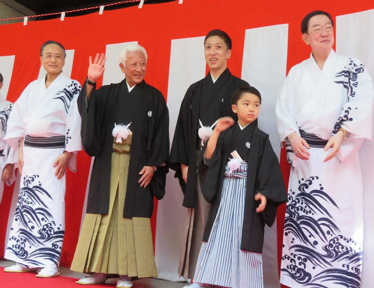 片岡仁左衛門(80)ら俳優陣は船から下りた後、劇場前で多くのファンを前にあいさつ。今月、東京・歌舞伎座で襲名披露したばかりの初代中村萬壽(69)、六代目中村時蔵(36)、五代目中村梅枝(8)が親子三代そろって大阪入りとあって、仁左衛門も「何としましてもこのご披露を大成功に収めたい」と力を込めた。