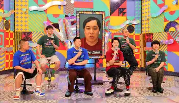 会場に霜降り・せいやの姿がなく、メンバーはソワソワ。すると中央のモニターの画面がつき、笑顔のせいやが登場。大阪からのリモート参加となった。
