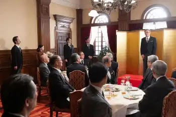 あいさつに立った穂高は星朋彦(平田満)の言葉を引用し「法律を一生の仕事と決めた時から、旧民法に異を唱え、ご婦人や弱き者たちのために声を上げてきたつもりだった。もっと何かできることがあったのではないのか。出がらしも何も、昔から私は自分の役目なんぞ果たしていなかったのかもしれない」と後悔の念を吐露。