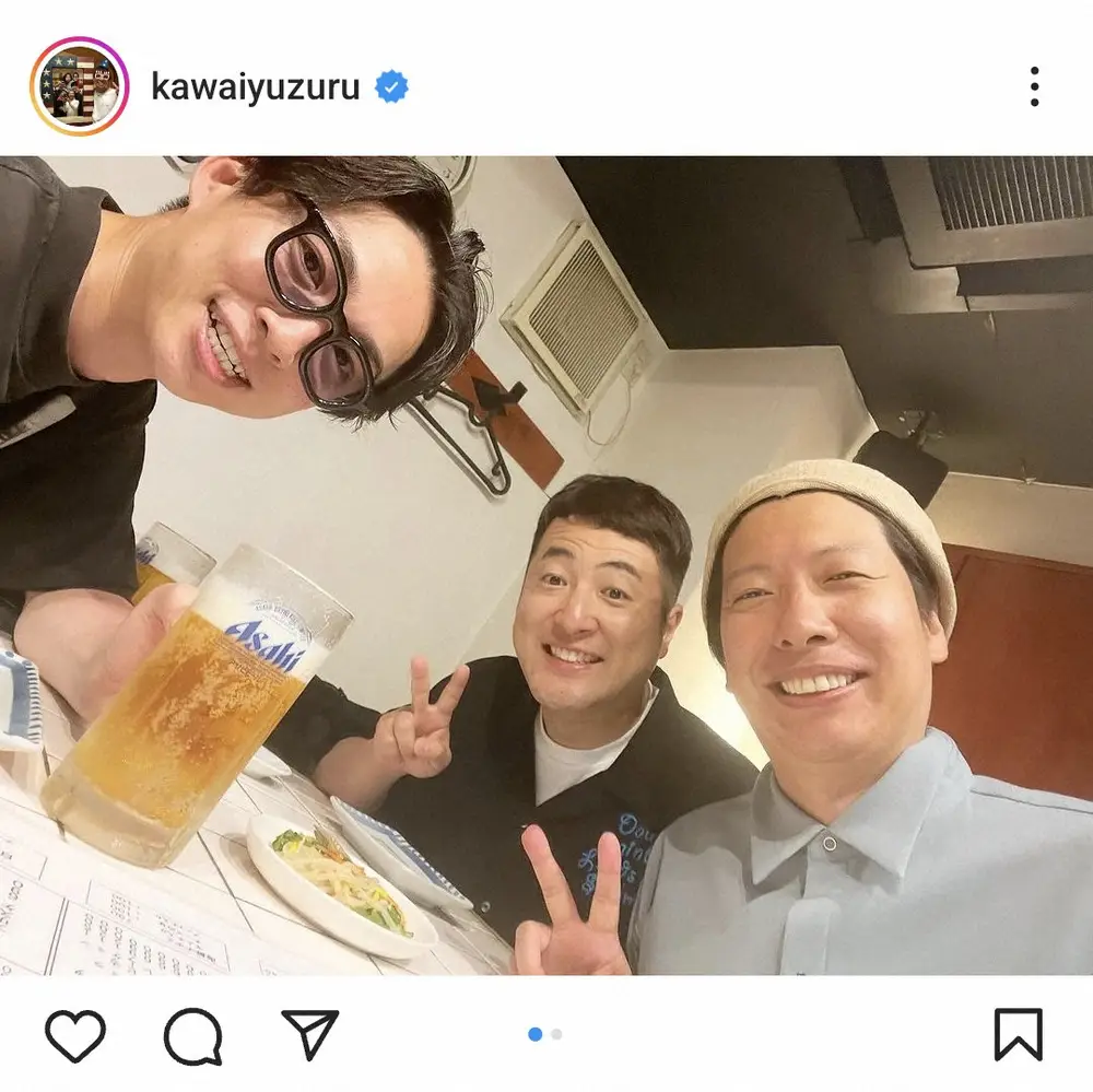 河井ゆずる 「40分だけダッシュでご飯」同期の人気芸人2人と仲良しショットに「サイコーメンツ!」の声