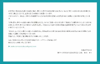 今後、皆様からお叱りを頂戴する覚悟ですが、そのご意見を正面から受け止めて、何ができるかを考え、行動して参りたいと考えています。改めて皆様にお詫び申し上げますとともに、ご理解賜れば幸いです。