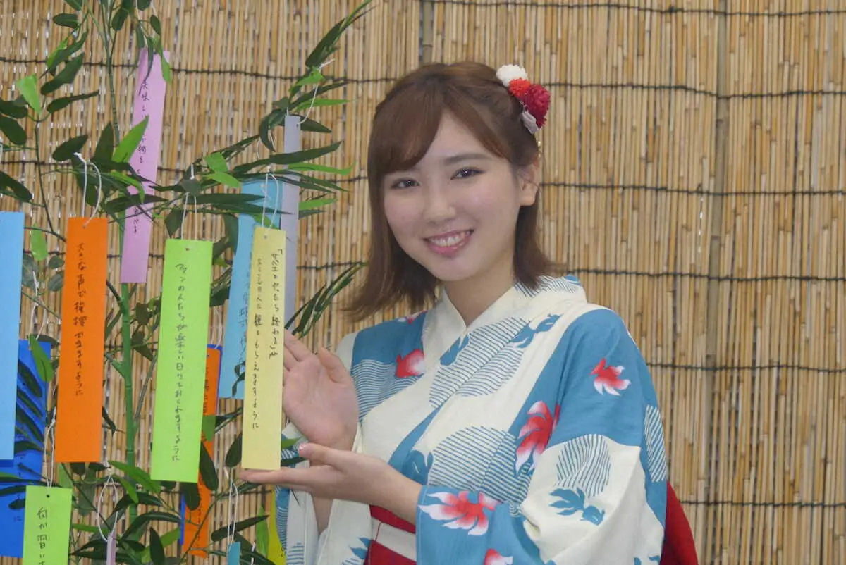 目前に控えた七夕にちなみ、この日は浴衣姿で自身の願い事も披露。「そろそろ恋愛とかしてみたい」という願い事に「幸せになる気はあるのに、手元にないんですよね…。本当にびっくりしてます。こんな21歳予想してませんでした」と苦笑い。